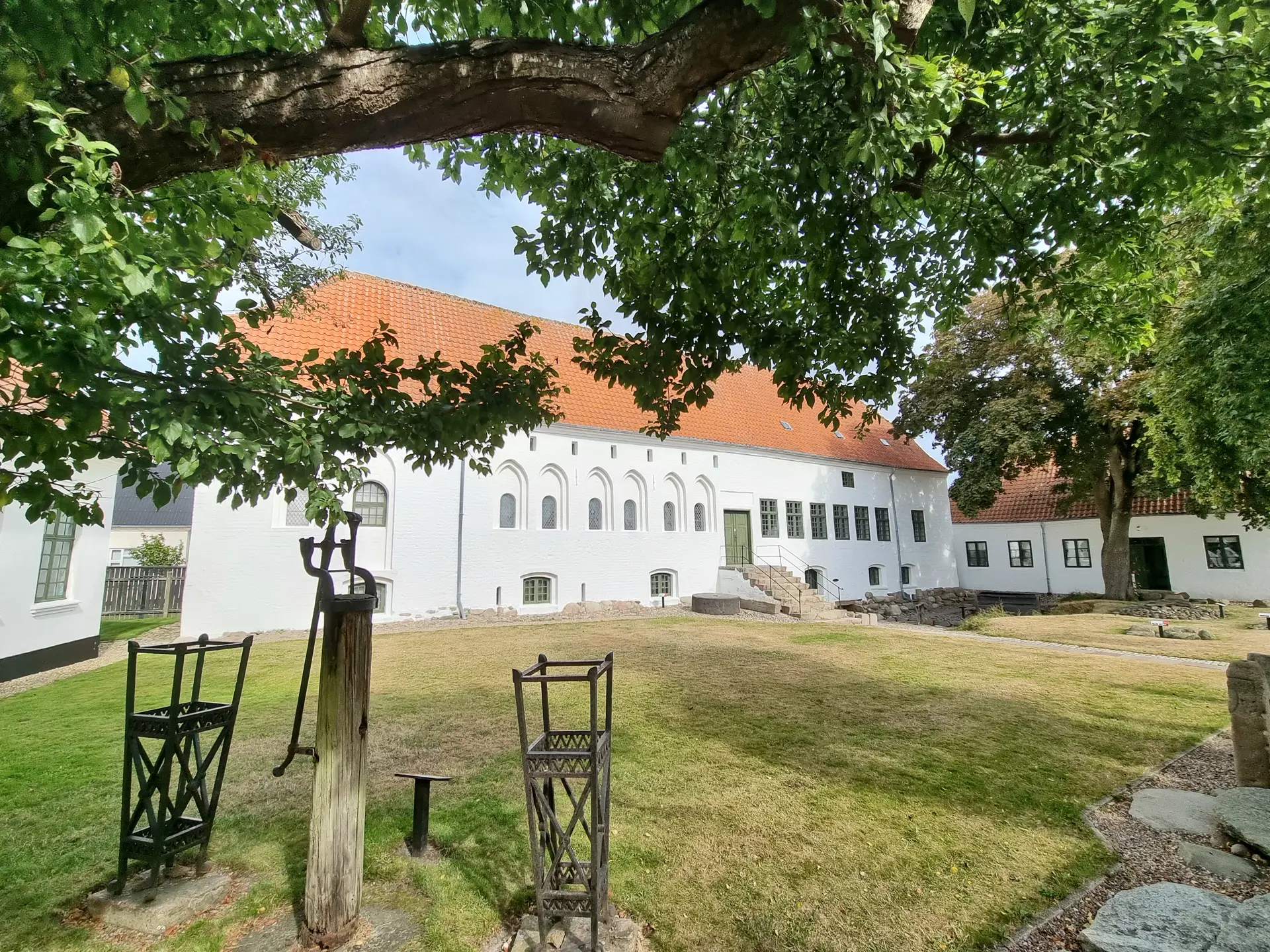 Når du besøger Dueholm Kloster, starter du i museumsbutikken – og her er det ikke bare billetter, du får med dig. Du bliver mødt med et smil, en venlig bemærkning og måske et tip om, hvad du ikke må gå glip af. Herfra går turen videre ind i den fredede hovedbygning, som engang blev rejst af johannitermunke – og videre til to andre charmerende huse, der hver gemmer på deres egne fortællinger.